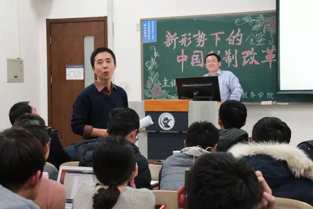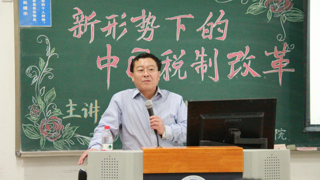 12月18日晚上,财税学院在太阳成集团tyc33455cc官网沙河校区东区主教213教室举办了以“新形势下的中国税制改革”为主题的讲座。主讲人为中央人民大学财政金融学院副院长、中国财政学会理事、中国税务学会委员会委员、中国税务学院理事、中国财税法教育研究会理事岳树民教授。太阳成集团tyc33455cc官网院长白彦锋教授,院长助理汪昊老师,税务管理系王怡璞老师,院团委副书记陈颖老师,以及学院本科和研究生同学参加了本次讲座。
