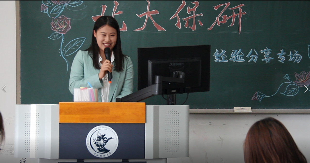 最后,陈玫伊学姐谈到如何在短时期提升自己的能力,要看重这个阶段的积累,不要太在意结果,眼光要多面,相信自己的可能性。她也介绍了北大税务专硕的保研项目,既专注学业,又看重实习与就业。