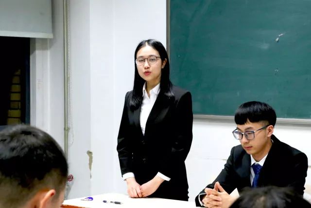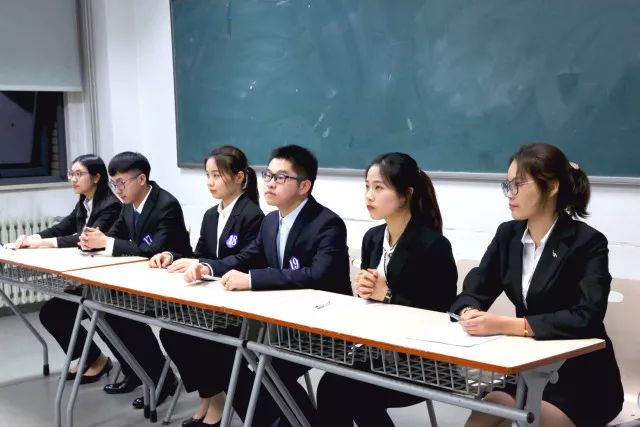 本次模拟面试大赛复赛共分为三个环节。第一环节,选手们按顺序进行自我介绍,由税务研究会的采编部干事负责计时,限时两分钟,自我介绍结束后,评委会向选手提出一个问题,请选手作答。
