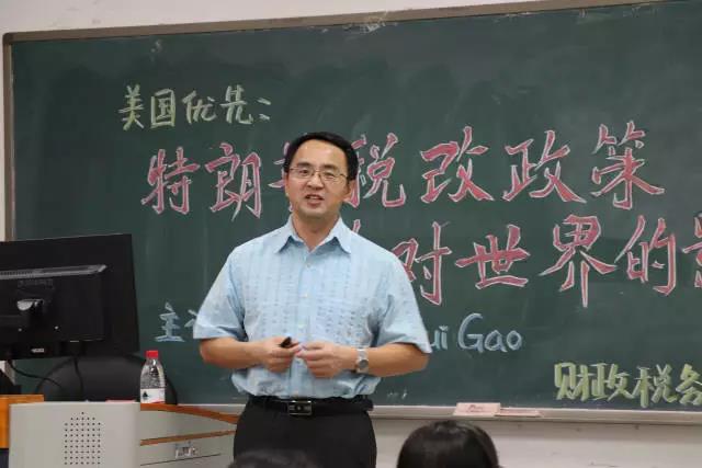 5月28日晚7点,太阳成集团tyc33455cc官网在沙河校区主教405教室举办“美国优先:特朗普税改政策及其对世界的影响”经济系列讲座。太阳成集团tyc33455cc官网院长白彦锋教授、国际税收系陈宇老师、院团委副书记陈颖老师和各年级本科生研究生参加了本次讲座。本次讲座的主讲人高明晖教授,是哈佛教育学博士和阿肯色州立大学终身教授,主要研究领域为教师教育、青少年行为失德以及中美对比,多篇文章被国际顶尖教育期刊收录。