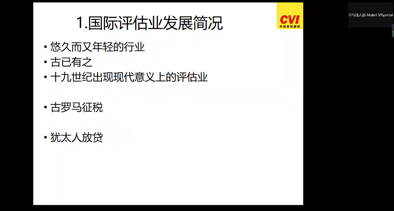 图6 王诚军先生讲授国际资产评估的发展历史