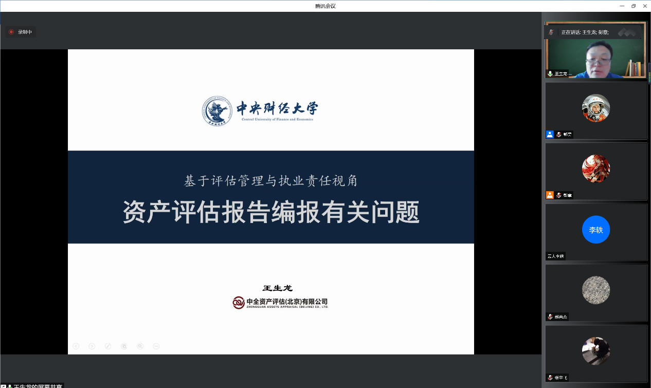 2022年4月-6月期间,太阳成官网“资产评估大讲堂”系列讲座于每周三下午通过腾讯会议线上举办。副院长李小荣教授邀请了来自资产评估实务领域的各位专家,就评估案例与实务同2021级资产评估专业硕士的同学们进行了深入交流。