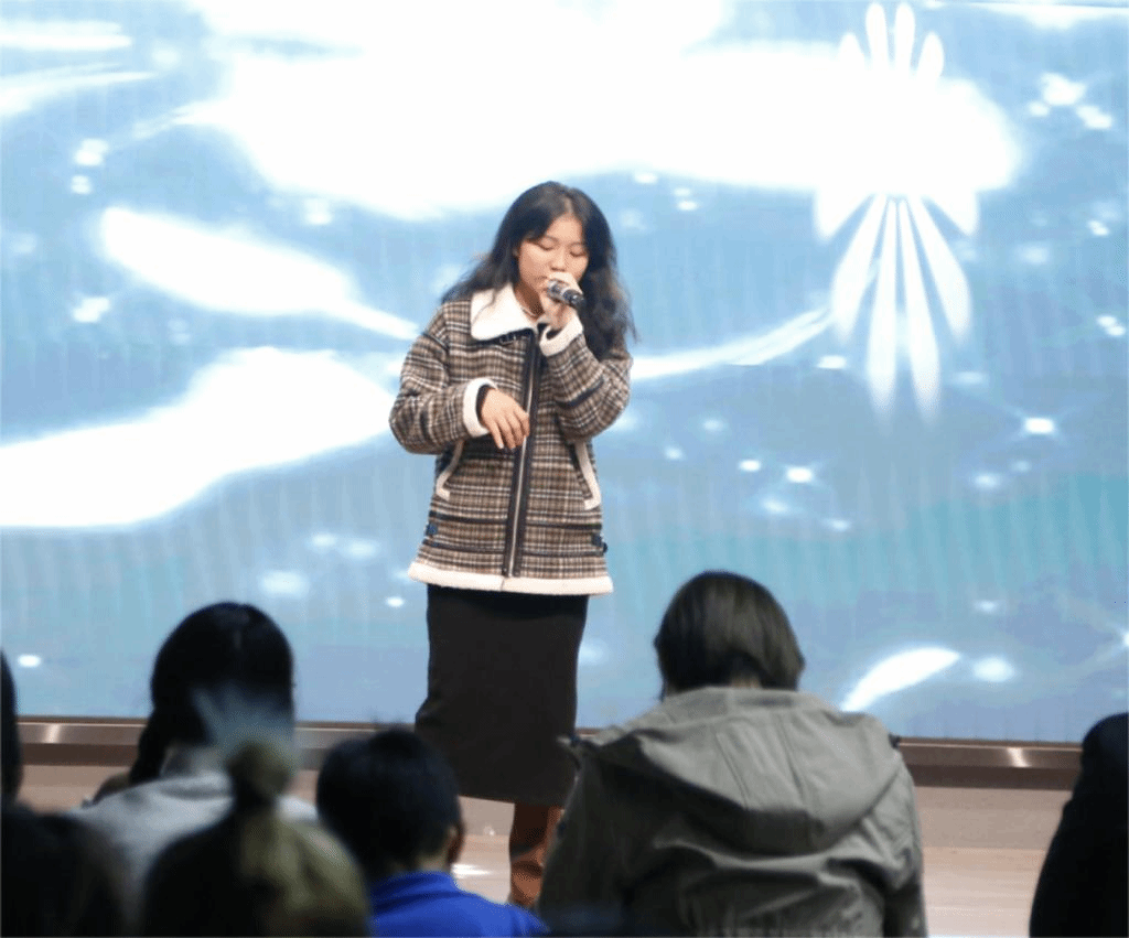 连睿骁和吴梦珊两名同学带来歌曲《低潮期》,轻松愉快的男声与甜美欢快的女声让我们陶醉其中,洗尽我们低潮期的烦恼,满怀希望,整装重新出发。