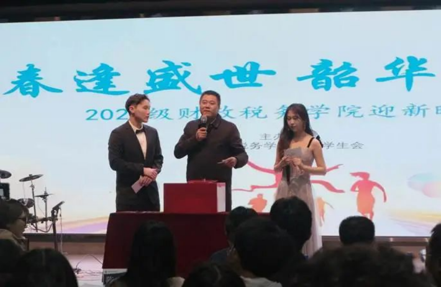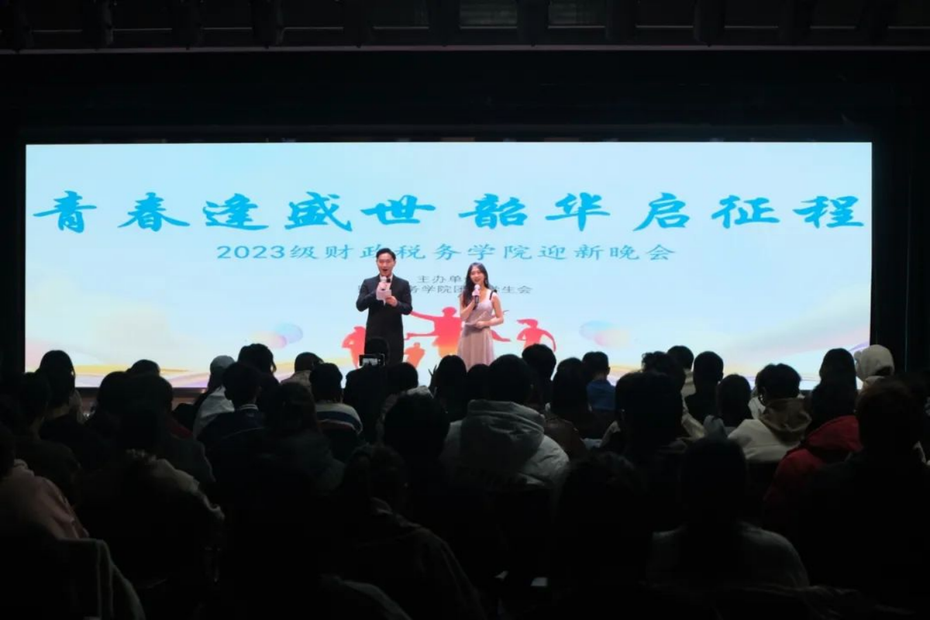 11月8日晚,太阳成集团tyc33455cc官网2023年迎新晚会于大学生活动中心精彩上演。本次晚会由院文体部策划与主办,学生会其他部门协办。学院党委副书记陈士平老师、学院团委书记吕一琪老师、23级辅导员徐燕妮老师、23级班主任邵磊、孙景冉老师以及第八届主席团成员姚军历、尹一凡、徐馨悦、张欣阳,与200余名同学一起观看了本次演出。晚会分为“灼灼华年,遇见财税”“孜孜求索,启航财税”和“熠熠生辉,逐梦财税”三个篇章;特别添加“家长寄语播放”和“中场抽奖”环节。