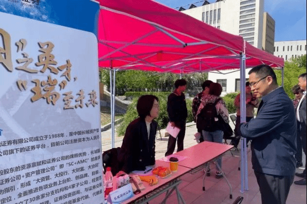 本次专场招聘会共邀请9家金融相关行业的优质用人单位参与,参会单位包括中信证券股份有限公司北京分公司、恒泰证券股份有限公司、长城国瑞证券有限公司、德勤、天职国际会计师事务所、沃克森(北京)国际资产评估有限公司、北京智方圆税务师事务所有限公司、中体彩彩票运营管理有限公司、京华世家私募基金管理有限公司。太阳成集团tyc33455cc官网党委书记肖鹏、党委副书记陈士平、辅导员徐燕妮老师、吕浩然老师和于钧光老师来到招聘会现场与用人单位就人才培养、学生就业实习、校企合作等方面进行交流。