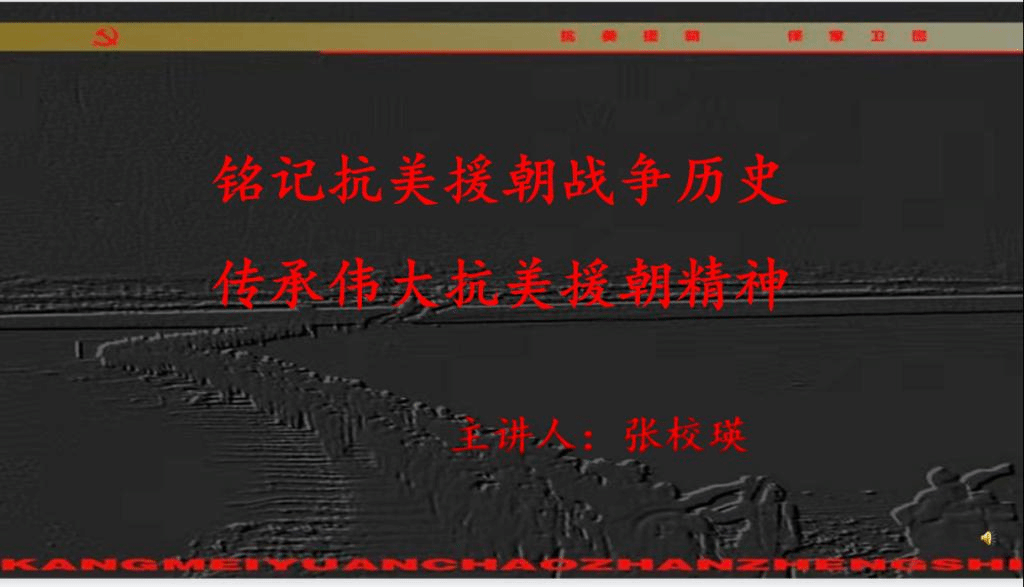 张校瑛副馆长从朝鲜内战爆发的原因、中共中央决策出兵的背景、抗美援朝战争的基本过程、抗美援朝战争的伟大胜利和抗美援朝战争的意义和影响这五个方面坚定而温情地讲述了抗美援朝的历程,并通过运用历史资料、列举典型历史事件、播放珍贵的历史影像把师生们带回到了70年前的英雄岁月重温红色历史,展现了在波澜壮阔的抗美援朝战争中,英雄的中国人民志愿军始终发扬祖国和人民利益高于一切、为了祖国和民族的尊严而奋不顾身的爱国主义精神,英勇顽强、舍生忘死的革命英雄主义精神,不畏艰难困苦、始终保持高昂士气的革命乐观主义精神,为完成祖国和人民赋予的使命、慷慨奉献自己一切的革命忠诚精神,为了人类和平与正义事业而奋斗的国际主义精神,锻造了伟大抗美援朝精神。